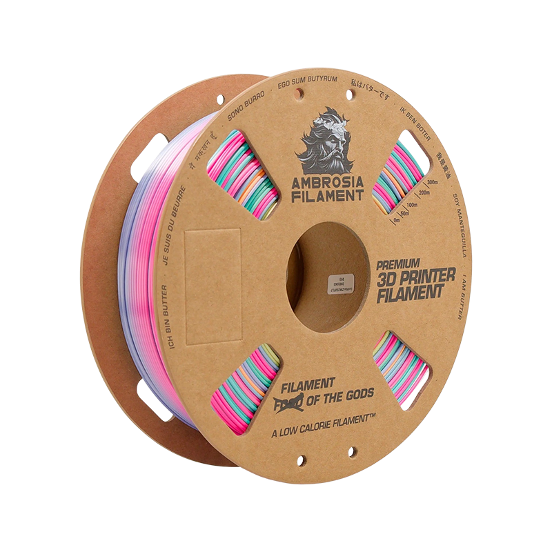 Ambrosia's PLA Silk filament is part of the Low Calorie line. No additives, just butter smooth printing. Derived from 100% Virgin Grade-A Non-Toxic pellets. Manufactured to a tighter than standard tolerance (+/- 0.03mm) you'll experience consistent extrusion throughout the spool.