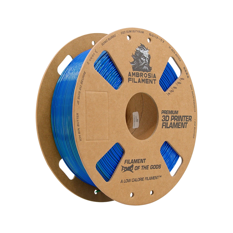 Ambrosia's PLA Silk filament is part of the Low Calorie line. No additives, just butter smooth printing. Derived from 100% Virgin Grade-A Non-Toxic pellets. Manufactured to a tighter than standard tolerance (+/- 0.03mm) you'll experience consistent extrusion throughout the spool.