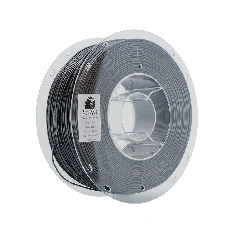 Ambrosia Filament's Polyphenylene Sulfide - Carbon Fiber (PPS-CF) filament is built for demanding applications where standard materials fall short, offering high heat and chemical resistance, excellent stiffness, and low moisture absorption.