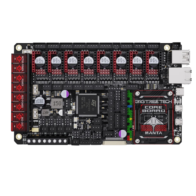 The BIGTREETECH Manta Series of 3D Printer Controller boards offer a modern and feature rich platform while being compact and convenient. Sold in 4, 5, and 8 driver configurations!