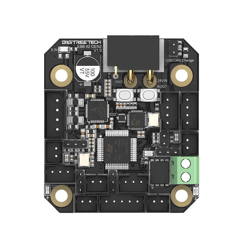 The most protected 3D printer toolboard ever built. EBB36 and EBB42 GEN 2 features switchable CAN/USB communication, comprehensive protection circuits, and supports chamber temperatures up to 75°C.