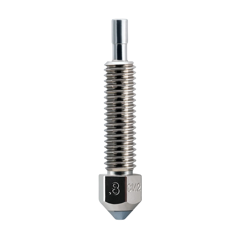 The Micro Swiss CM2 Nozzle is designed for all 3D printing applications. It uses a specialized copper chromium zirconium body that handles high temperatures without losing strength, paired with electroless nickel plating for superior corrosion resistance.