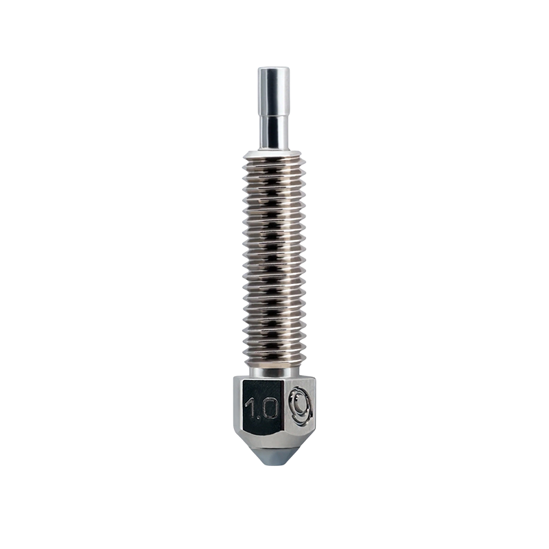 The M2 hardened steel tip reaches 68 HRC hardness and features a WS2 nano coating that creates an ultra-smooth, non-stick surface with a friction coefficient of just 0.035. The revolutionary CHT technology splits filament flow into multiple chambers through the melt zone, capable of achieving volumetric flow rates up to 50 mm³/sec. This also ensures more uniform layer deposition and stronger interlayer bonding.