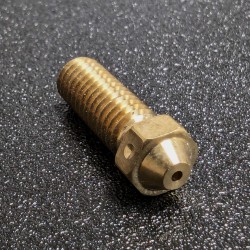 This Genuine E3D Volcano nozzle in brass is offered in 1.75mm and 2.85mm filament sizes and a wide range of orifice sizes. Brass nozzles offer smooth and consistent flow and are best suited for non-abrasive filaments.