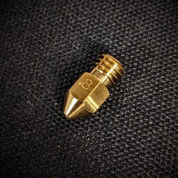 E3D's brass MK8 nozzles have optimal thermal properties for everyday printing, providing smooth layers for standard non-abrasive applications. They use the same tried and tested internal geometry as the V6 and Revo range of Nozzles - helping you to avoid high back pressure issues.