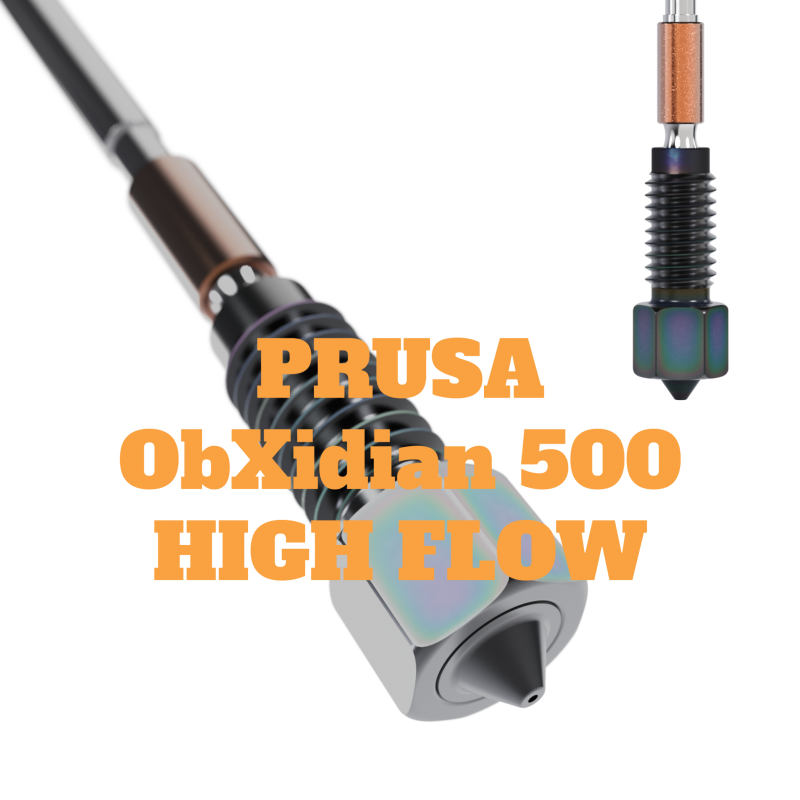 Powered by brand new ObXiDian® 500 technology, these premium nozzles for Prusa Machines are at least 5 times more wear resistant than our popular ObXidian range with an additional 4-channel high-flow feature!