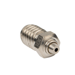 A Nickel coating is applied to our Coated Brass nozzles to provide protection against corrosion, erosion, and abrasion. Nickel coated nozzles have more corrosion resistance and lower coefficient of friction, which allows slicker feeding of material and delays plastic adhesion to the nozzle’s surface.