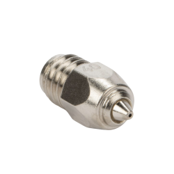 A Nickel coating is applied to our Coated Brass nozzles to provide protection against corrosion, erosion, and abrasion. Nickel coated nozzles have more corrosion resistance and lower coefficient of friction, which allows slicker feeding of material and delays plastic adhesion to the nozzle’s surface.