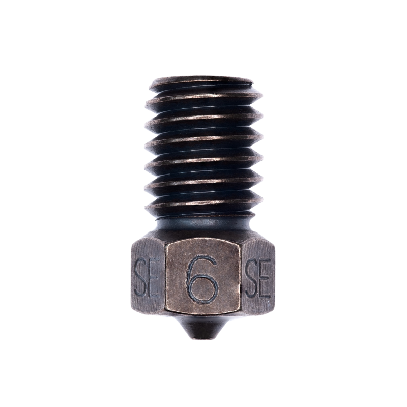 With a Limited Lifetime Warranty against abrasive wear, the GammaMaster Nozzle will print the entire gamut of thermoplastic materials. From basic PLA to glass fiber reinforced PEI, the GammaMaster Nozzle excels at printing abrasive filaments with a Rockwell C hardness level of 63.