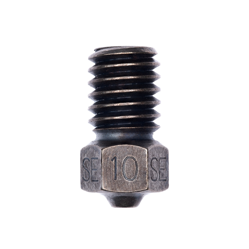 With a Limited Lifetime Warranty against abrasive wear, the GammaMaster Nozzle will print the entire gamut of thermoplastic materials. From basic PLA to glass fiber reinforced PEI, the GammaMaster Nozzle excels at printing abrasive filaments with a Rockwell C hardness level of 63.