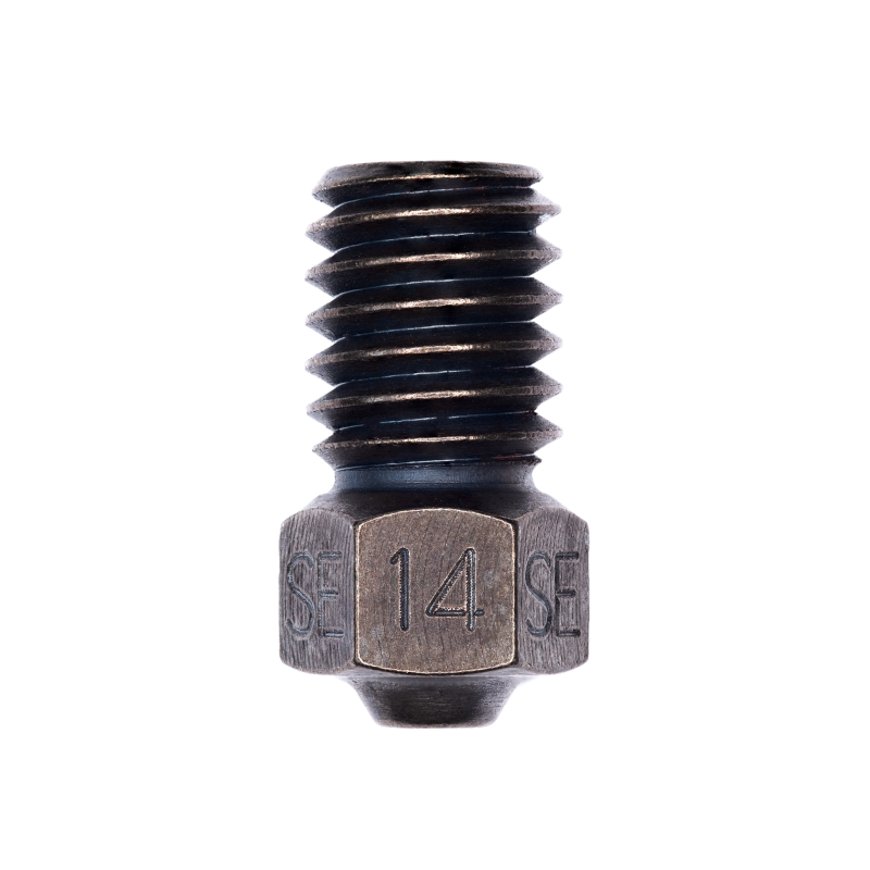 With a Limited Lifetime Warranty against abrasive wear, the GammaMaster Nozzle will print the entire gamut of thermoplastic materials. From basic PLA to glass fiber reinforced PEI, the GammaMaster Nozzle excels at printing abrasive filaments with a Rockwell C hardness level of 63.