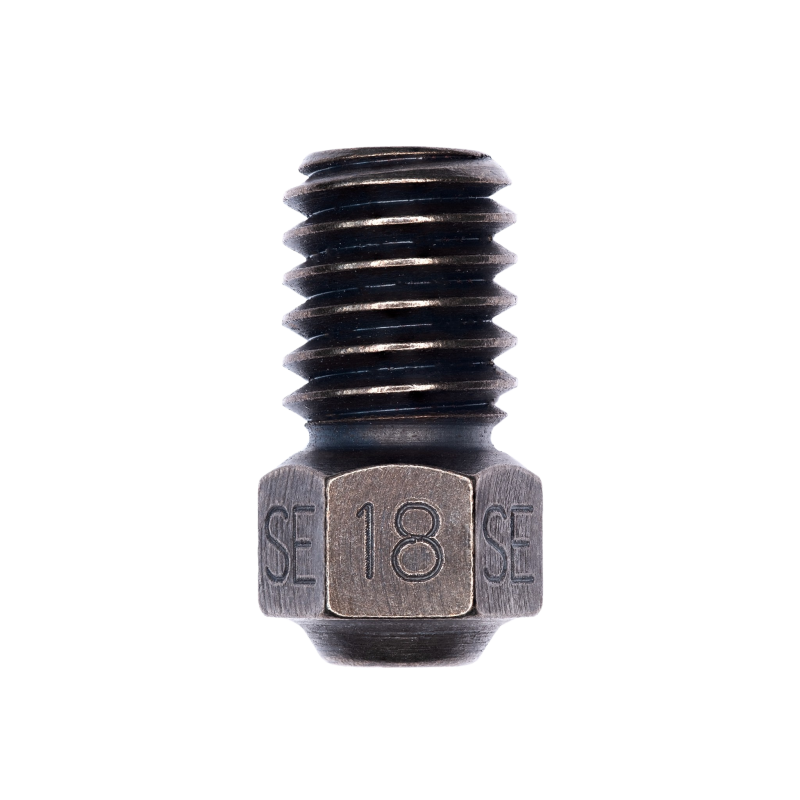 With a Limited Lifetime Warranty against abrasive wear, the GammaMaster Nozzle will print the entire gamut of thermoplastic materials. From basic PLA to glass fiber reinforced PEI, the GammaMaster Nozzle excels at printing abrasive filaments with a Rockwell C hardness level of 63.